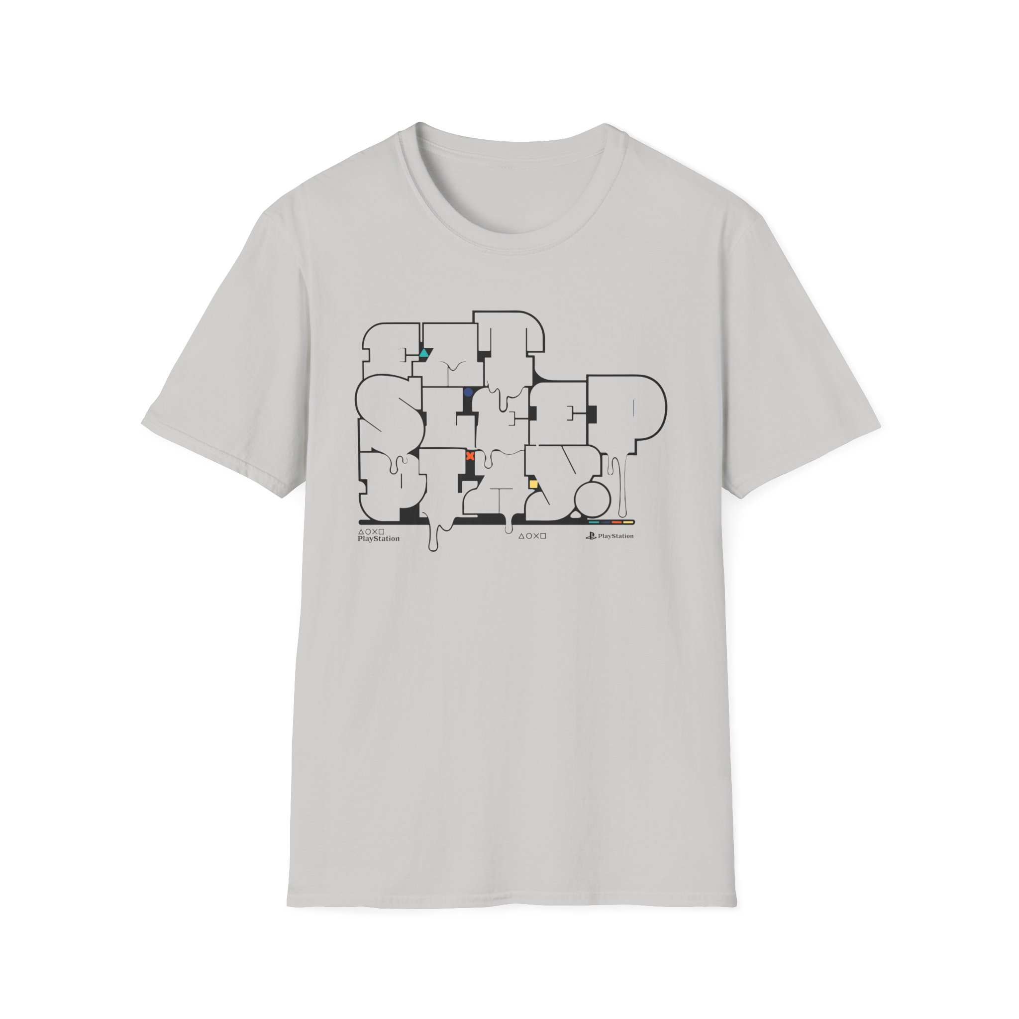 The PlayStation Eat Sleep Play unisex soft-style t-shirt puts a new spin on casual comfort. Made from very soft materials, this tee is 100% cotton for solid colors. Heather colors and sports grey include polyester. The shoulders have twill tape for improved durability. There are no side seams. The collar is made with ribbed knitting to prevent curling damage.