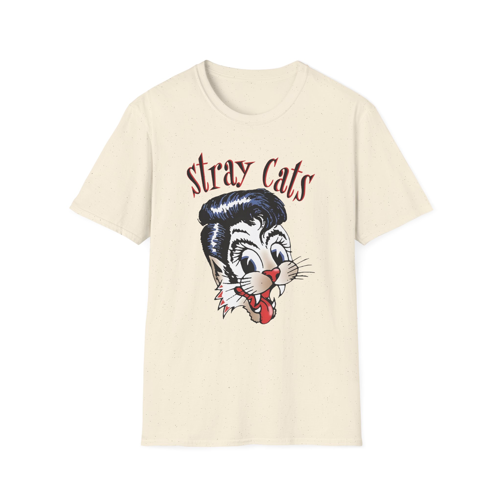 The Stray Cats Airbrush Cat unisex soft-style t-shirt puts a new spin on casual comfort. Made from very soft materials, this tee is 100% cotton for solid colors. Heather colors and sports grey include polyester. The shoulders have twill tape for improved durability. There are no side seams. The collar is made with ribbed knitting to prevent curling damage.